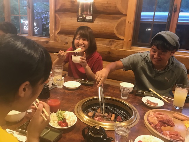 打ち上げはログコテージと併設されているログ亭で、焼肉を頂きました!!