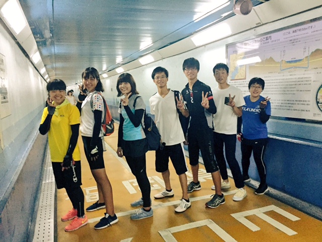 12時前に下関に到着し、関門トンネルを通ります!初めて関門トンネルを歩く班員もいて、テンションがあがります。わーい。