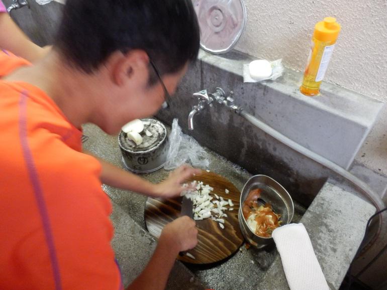 食事の準備をする一年生。この日の夕食はシチューらしい。やはり女子がいると違う。