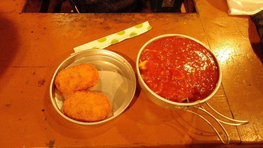 この日はソース多すぎのスパゲッティとコロッケでした。