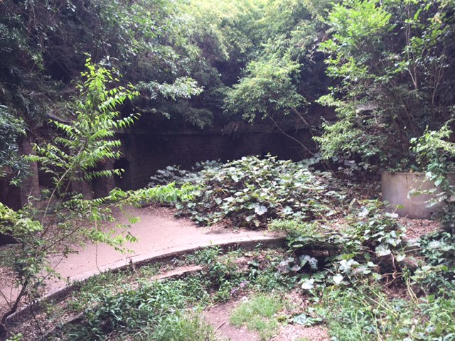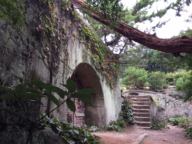 砲台跡の中には地下道を抜けた先に位置しているものもあり、日中にもかかわらずライトで照らしながら歩きました。