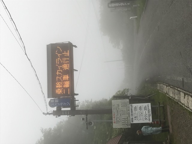皆で「視界悪いねー」と言いながらゆっくりスカイライン入口のゲートへ。