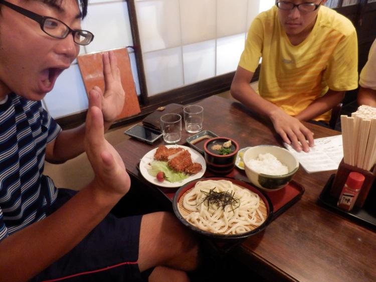 先に来た定食セットを見て喜ぶ寺田とそれを羨ましげに見る兼廣。