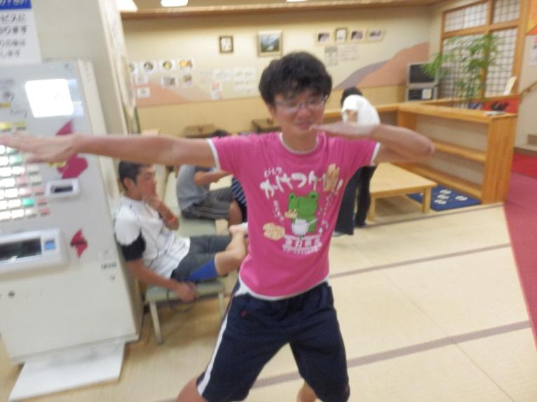 っている間,OBから僕への差し入れの剣を持たされてポーズを決める山本。後ろには首締めプーさんが……